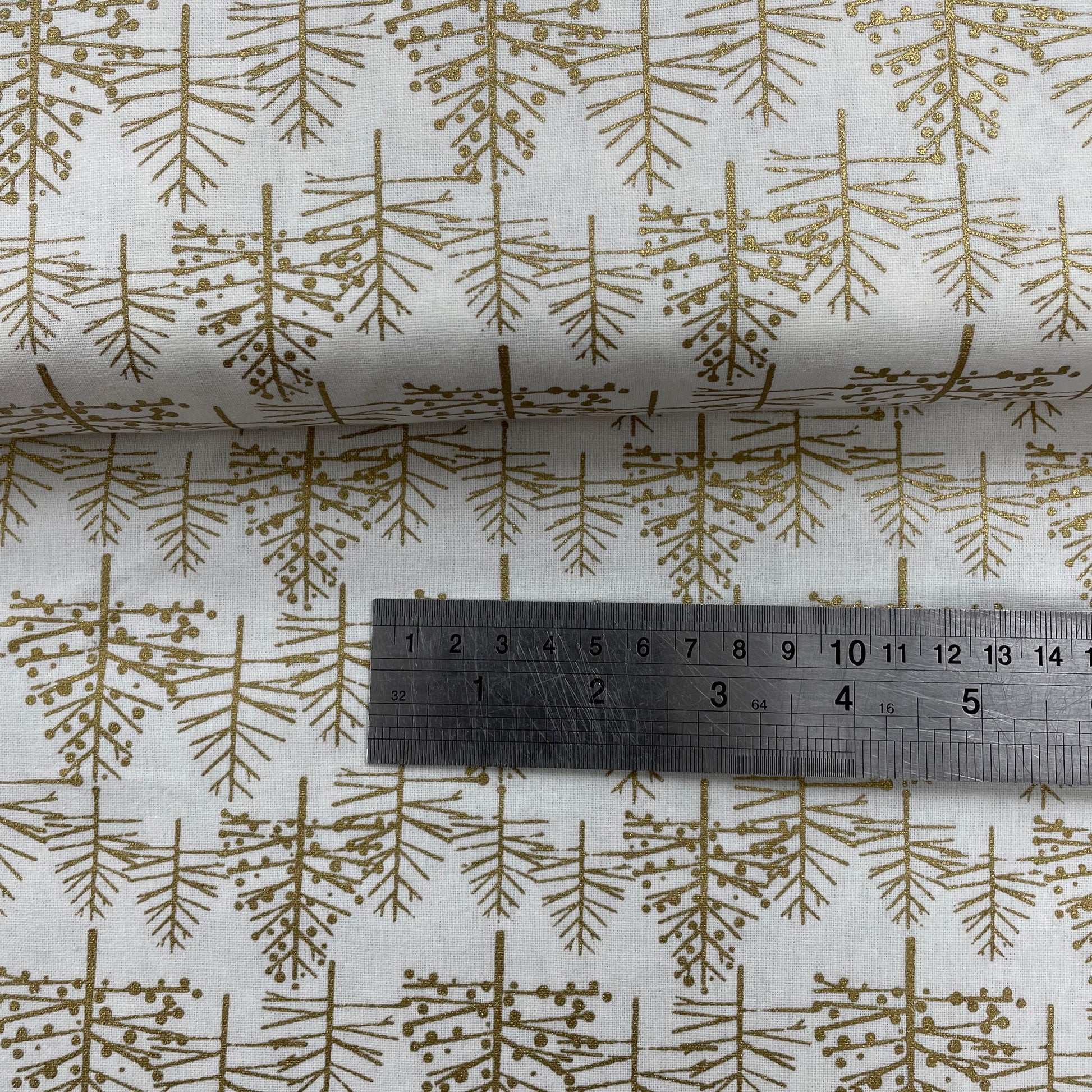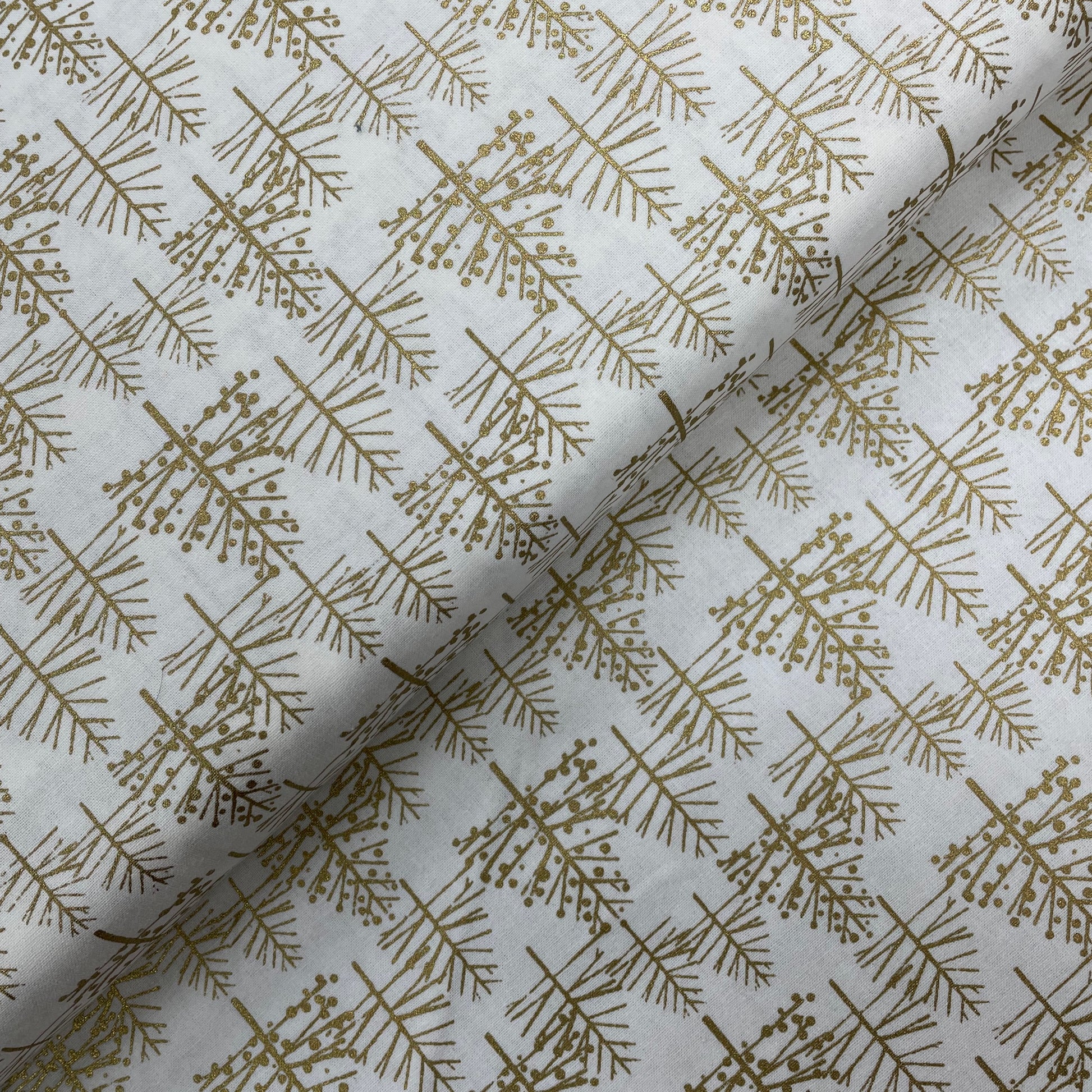 John Louden Metallic Gold Trees on Cream Christmas 100% Craft Cotton Fabric