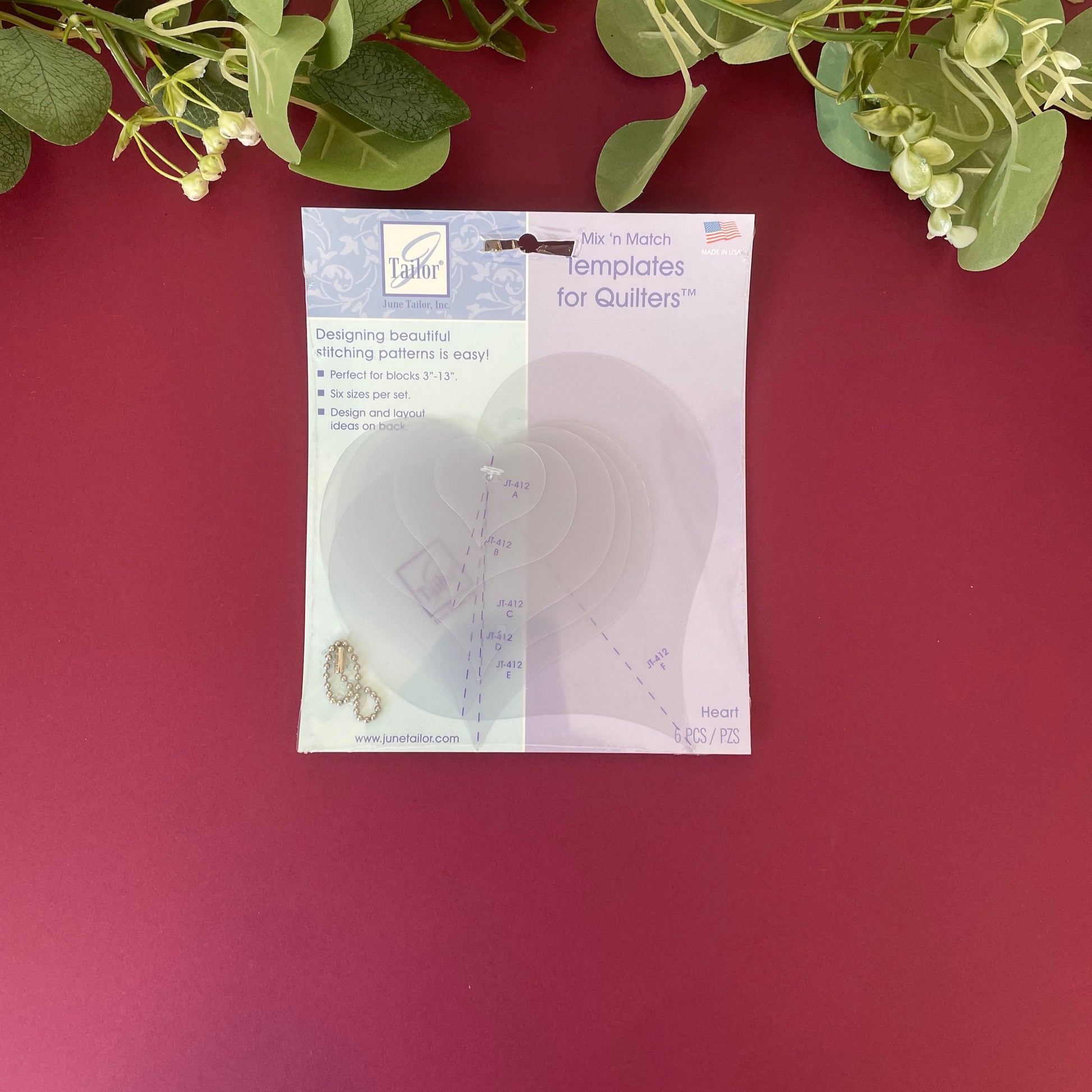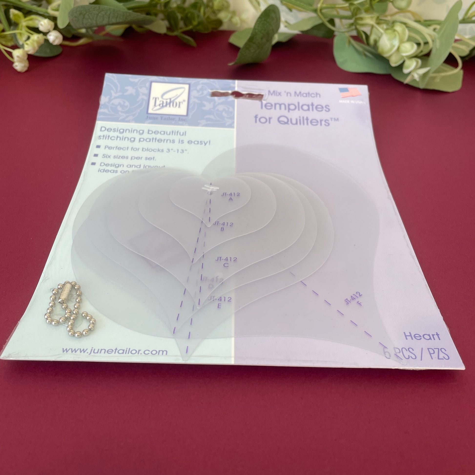2 different designs available - circle and heart. Perfect for quilt blocks from 3" to 13". Six sizes in each set. Includes a handy chain to keep altogether. Great for applique too.