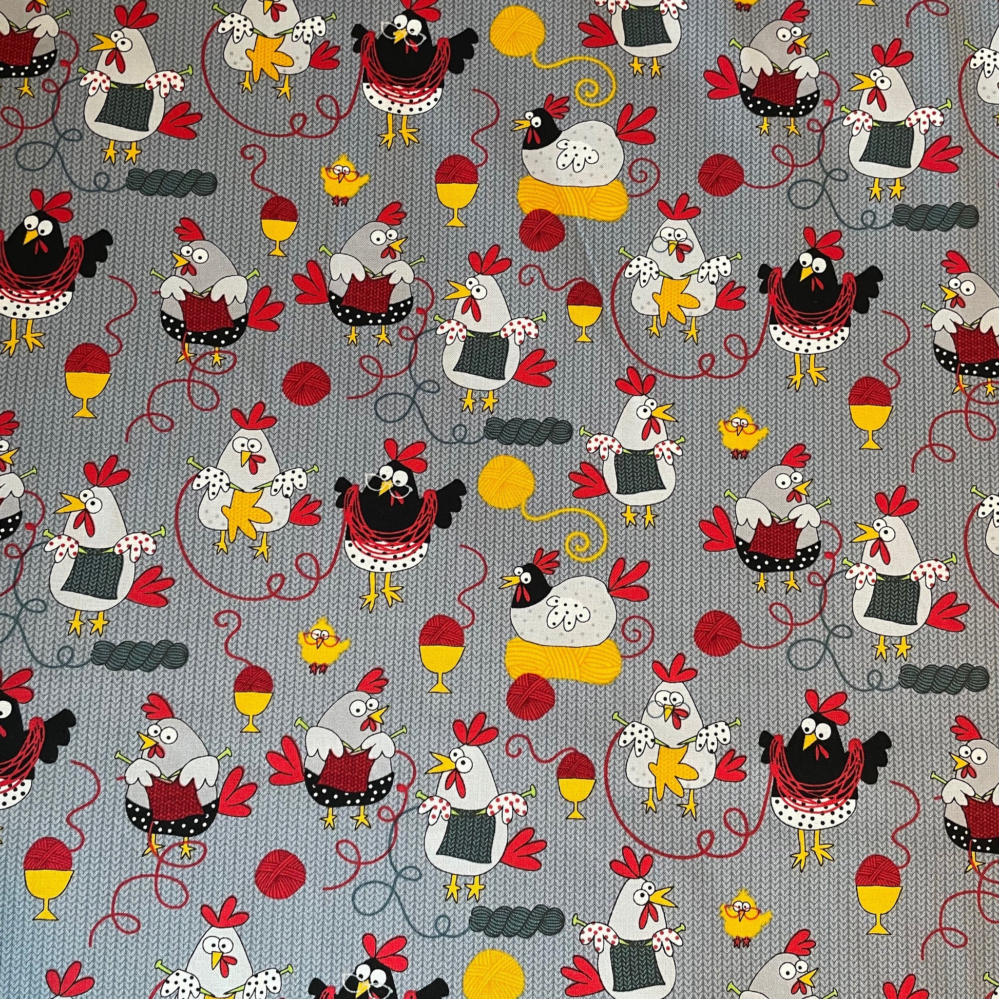 Knitting Hens Chickens on Grey